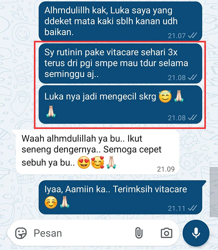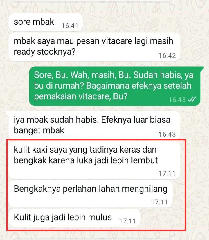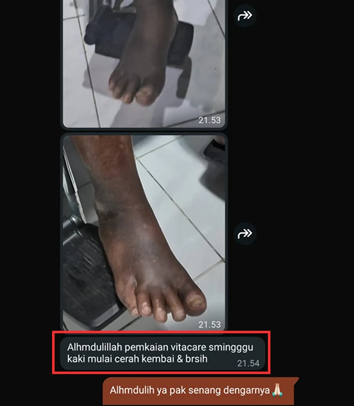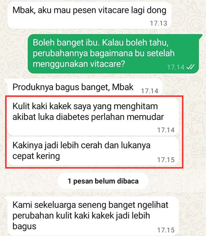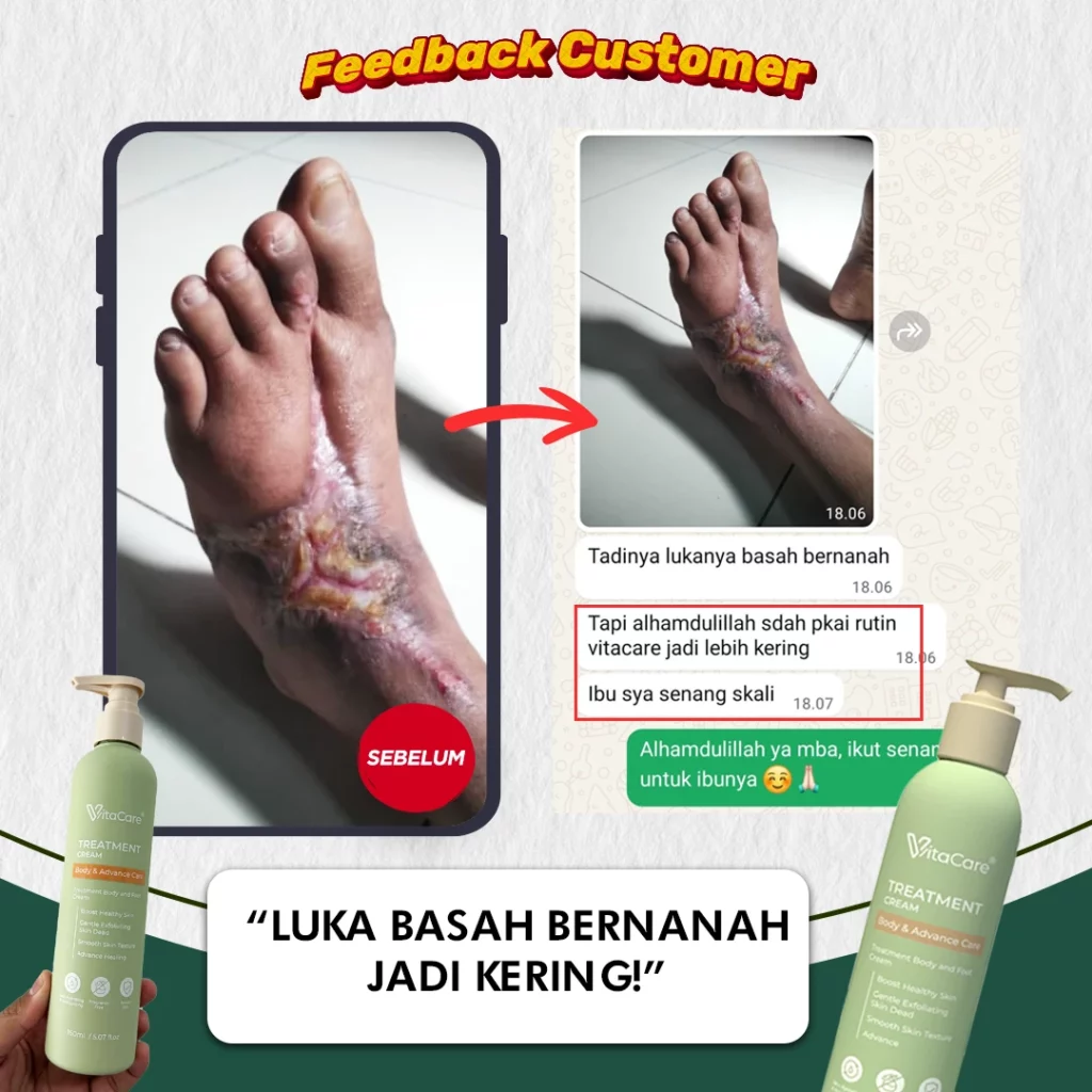 Jika VITACARE tidak Berhasil memberikan Hasil perubahan positif kepada masalah kulit diabetis anda, kami akan refund Uang anda 100%